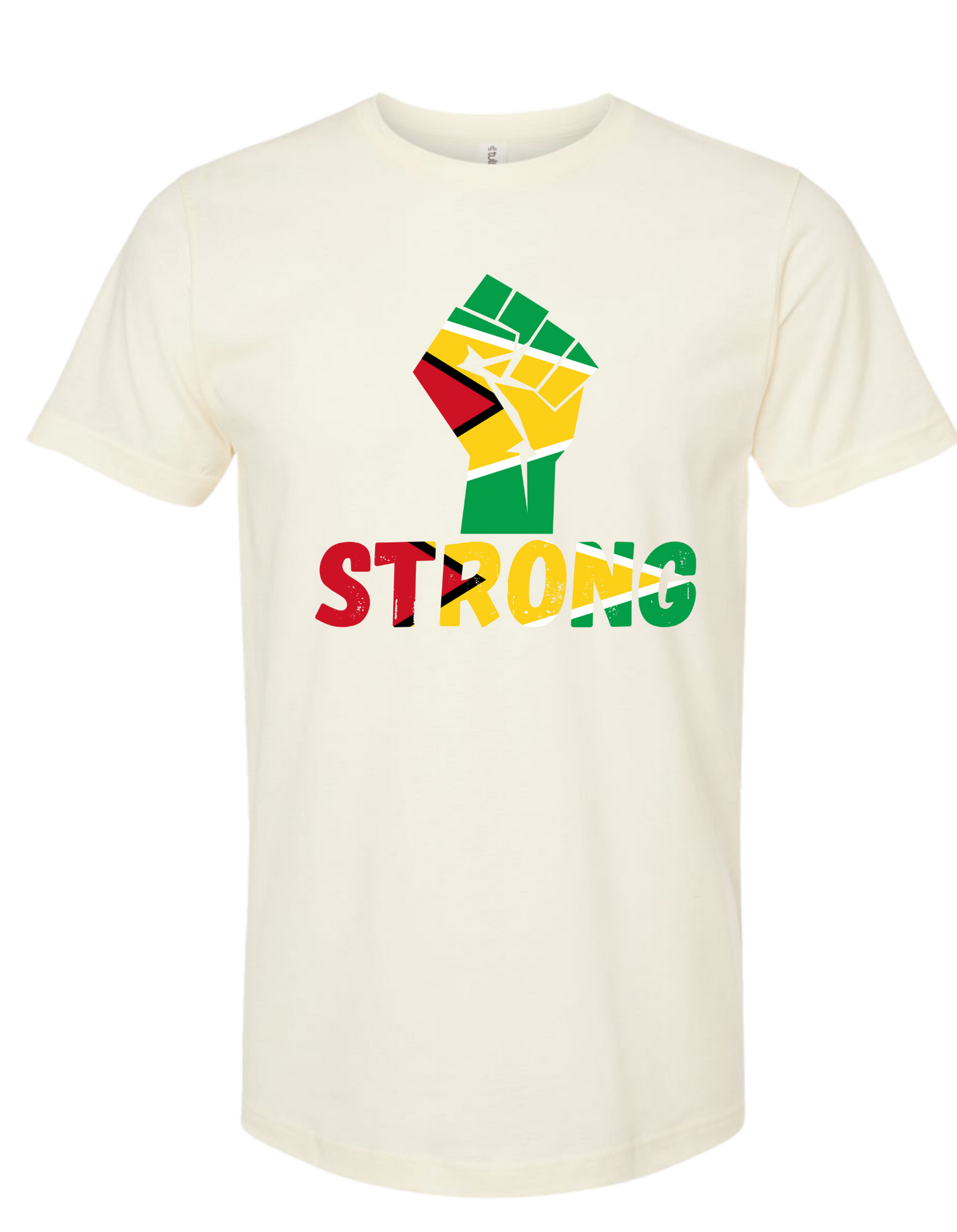 Show your strength, culture, and pride with our Guyana Strong T-Shirt. Featuring a bold raised fist filled with the Guyana flag design and the word STRONG in green, red, yellow, white, and black, this shirt is the perfect way to represent your roots.